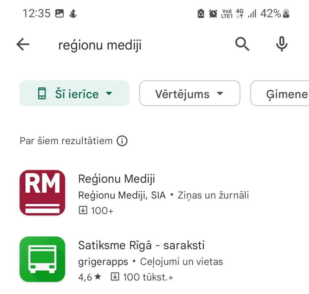 2. Ieraksti Play veikala meklētājā “REĢIONU MEDIJI” un meklēt: