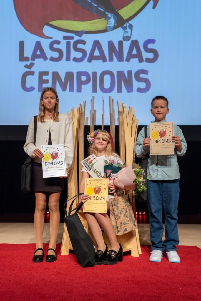 Čempiones titulu šogad ieguva Grēta Gerda Lepere no Dundagas vidusskolas, pārstāvot Kurzemi. Viņa lasīja lietuviešu autoru Vitalijas Maksvītes, Marjus Marcinkeviča grāmatas “Bete un lidojošā dzimšanas dienas dāvana” fragmentu. Iepazīstinot ar sevi, viņa teica: “Tas, kurš lasa grāmatas, izdzīvo tūkstošiem dzīvju. Tas, kurš nelasa, tikai vienu”. 2.vietā – Amēlija Laimiņa no Dobeles 1. vidusskolas, pārstāvot Zemgali, kura lasīja fragmentu no Dzintara Tilaka grāmatas “Zlatas ceļš”, kas stāsta par ukraiņu meitenes ceļojumu uz Rīgu caur kara plosīto Ukrainu. Amēlija, lai raksturotu savu lasītprieku, savā vizītkartē citēja Zigmunda Skujiņa vārdus: “Grāmatas ir kā smaržas – cita noturīgāka, cita ātrāk gaistoša”. 3.vietu ieguva Ralfs Mitkevičs no Ādažu vidusskolas, viens no Pierīgas reģiona finālistiem. Viņš bija izvēlējies Džeimsa Patersona, Krisa Tebetsa grāmatu “Pamatskola. Kā es izdzīvoju cīņā ar huligāniem, brokoļiem un Čūsku kalnu”. Viņa vizītkartē bija rakstīts: “Ar fantāzijas palīdzību es iekļūstu grāmatu pasaulē, kuru lasot esmu uzbūris. Te atdzīvojas stāsta varoņi, esmu pašā grāmatas notikumu virpulī”.
