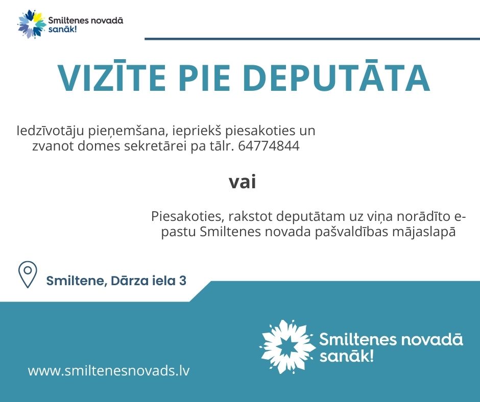 Pieteikties vizītē pie deputātiem iespējams, iepriekš piesakoties un zvanot Smiltenes novada pašvaldības domes sekretārei pa tālr. 64774844 vai rakstot deputātam uz viņa norādīto e-pastu Smiltenes novada pašvaldības mājaslapā – sadaļā “Deputāti”.