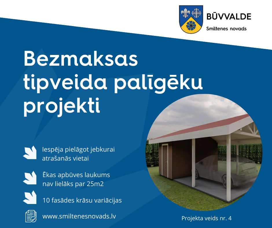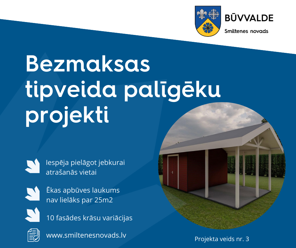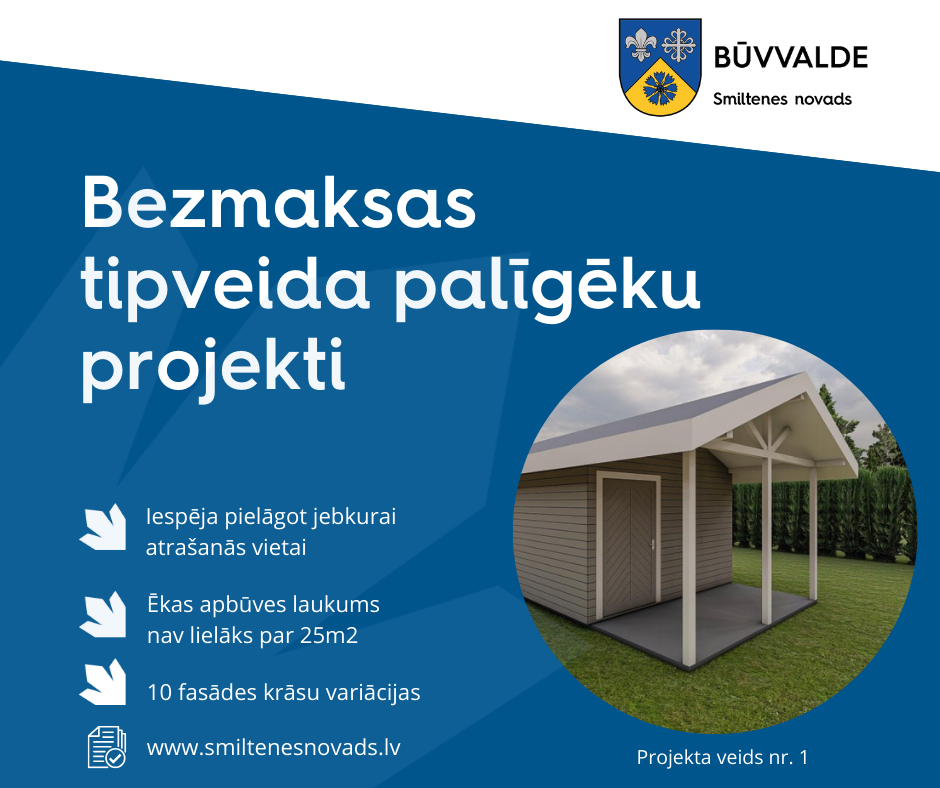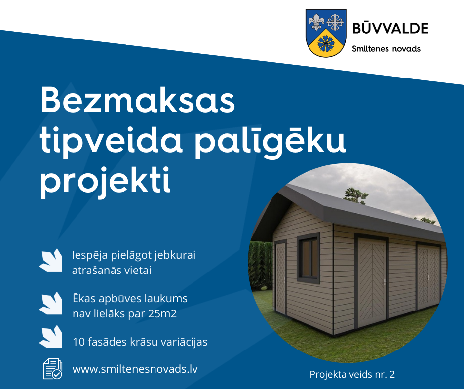 Kopumā Būvvalde brīvai piekļuvei sagatavojusi septiņus dažādus palīgēku projektus, dodot iespēju tos ērti pielāgot jebkurai atrašanās vietai, izvēloties sev piemērotāko veidu un fasādes krāsu. Piedāvāto ēku apbūves laukums, atbilstoši likumdošanai, nav lielāks par 25 m2. Ar piedāvātajiem variantiem var iepazīties www.smiltenesnovads.lv, sadaļā “Attīstība –Būvvalde –Tipveida projekti”.