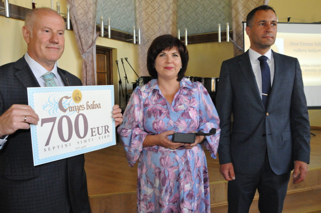 Turklāt šajā pasākumā jau 11. reizi Valkas novada pašvaldība pasniedza savu iedibināto prestižo Jāņa Cimzes balvu – īpašu statueti un 700 eiro naudas balvu. To šogad saņēma Valkas Jāņa Cimzes ģimnāzijas direktores vietniece izglītības darbā Gunita Gindra. Saņemot šo apbalvojumu, viņa sirsnīgus un emocionālus vārdus veltīja savam stiprajam plecam – kolēģiem no Valkas J. Cimzes ģimnāzijas un ģimenei.