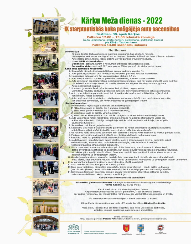 29. un 30. aprīlī Kārķos pēc divu gadu pārtraukuma notiks 17. Kārķu Meža dienas un 9. Koka auto sacensības.