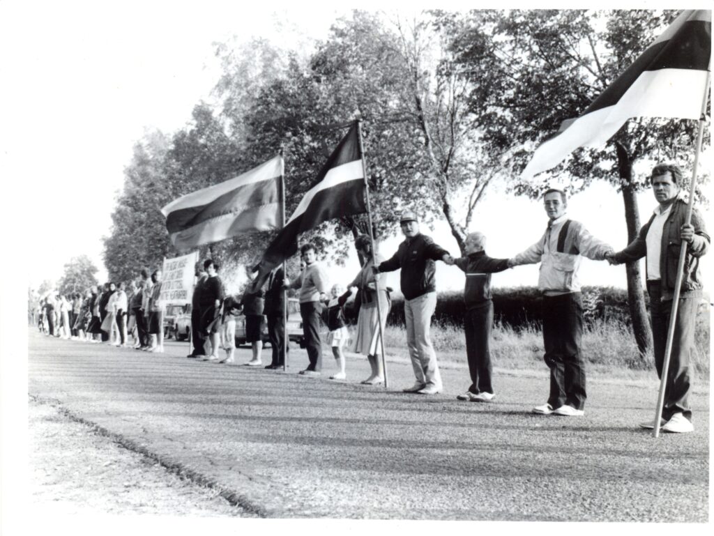 • 1989. gada 23. augustā, piecdesmitajā pakta parakstīšanas gadadienā, visu trīs Baltijas valstu iedzīvotāji pieprasīja atzīt Molotova-Ribentropa pakta parakstīšanas faktu un nekavējoties atjaunot Baltijas valstu neatkarību.