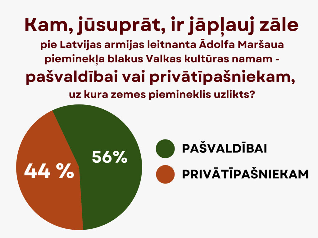 Portālā ievietotās aptaujas dati par to, kuram tad būtu jākopj šis īpašums pašā pilsētas centrā, rāda, ka tomēr vairākums aptaujas dalībnieku uzskata, ka rūpes par pļavu būtu jāuzņemas novada pašvaldībai.