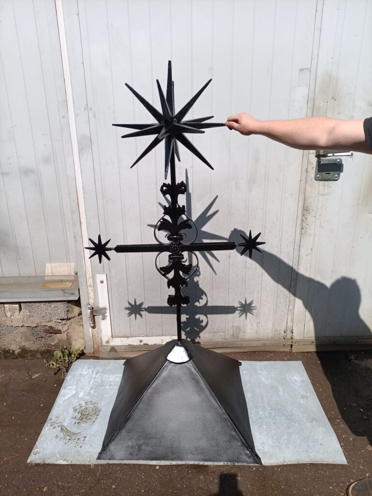 L. Lāne skaidro, ka šo reģiona nozīmes mākslas pieminekļa virsmu bija bojājusi korozija. Atsevišķas detaļas rūsas bojājumu ietekmē bija kļuvušas trauslas. Turklāt pirms vairākiem gadiem vētras laikā krusts nokrita no jumta, kā rezultātā atlūza vairāki dekoratīvi elementi.
