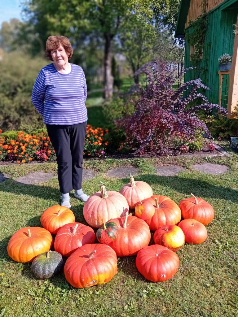 “Ķirbjus audzēju katru gadu. Man ir ierīkota komposta kaudze, kur tiem tīri labi patīk augt. Šogad tie skaisti padevušies. Ir bijuši gadi, kad tie izaug vēl lielāki. Protams, šie uz ķirbjiem rekordistiem nepretendē, bet vienalga prieks par ražu. Pietiks gan pašai, gan ar ko padalīties ar citiem. Arī kaimiņi, kas gāja garām, vienmēr pabrīnījās, kā izstiepušies ķirbji uz visām pusēm, bija arī tādi, kas gāja garām un bildēja lielās ogas. Divus lielākos meita jau pirms divām nedēļām aizveda uz Rīgu. Tos gan nenosvērām, nebija svaru. Tagad ciemos atbrauca otra meita ar ģimeni. Novācām pēdējos ķirbjus, sakopām dārzu, lai atpūšas līdz jaunajai sezonai,” stāsta Lidijas kundze, kurai dārzs ir sirdslieta daudzu gadu garumā.