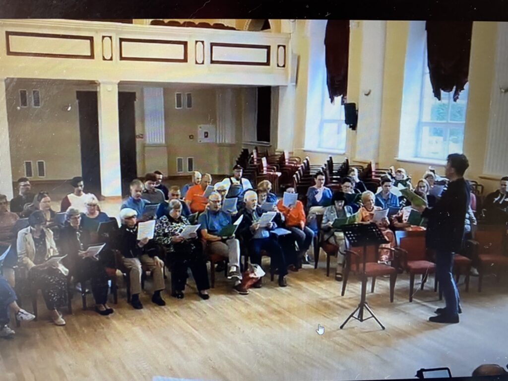 Pirmdien Valkas pilsētas kultūras namā notika Valkas novada kopkora mēģinājums ar diriģentiem Gintu Ceplenieku (attēlā) un Karīnu Pundzjus. FOTO: EKRĀNŠĀVIŅŠ NO MĒĢINĀJUMA VIDEO