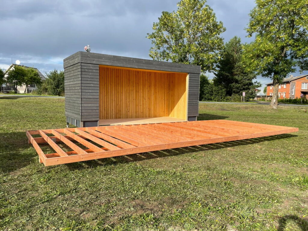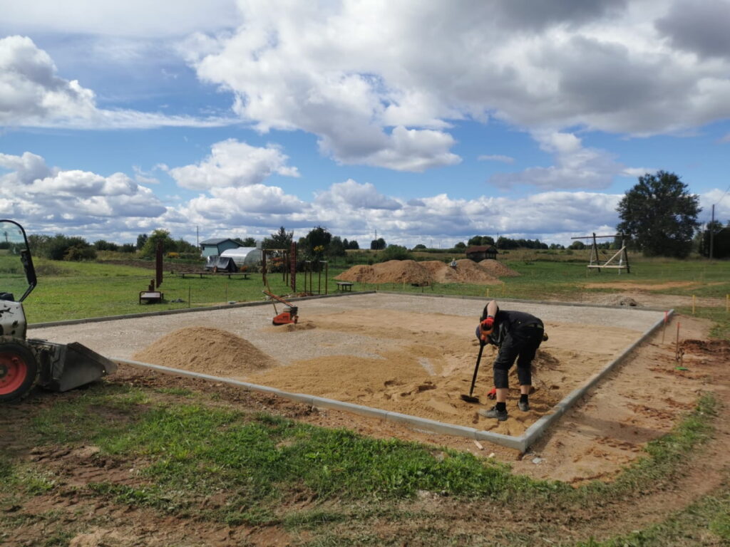 Būvniecības darbus veic SIA “MJ Eirobūve”, projekta ietvaros paredzēts izbūvēt gājēju celiņus plānotajā atpūtas teritorijā (kopējais garums 240m), celiņu paredzēts veidot no grants seguma, sablietējot to. Teritorijā plānots uzstādīt 5 apgaismes ķermeņus ar saules baterijām, lai izgaismotu atpūtas vietu dienas tumšajā laikā. Paredzēts uzstādīt nojumi ar izbūvētu platformu, kur varēs uzstāties dažādi mākslinieki, rīkojot pagasta pasākumus.
