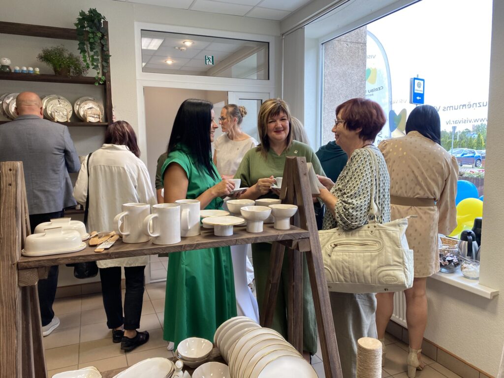 Jaunā veikala atklāšanu apmeklēja un veiksmīgu darbošanos veikala vadītājai Indrai Seļukai (attēlā no labās) un biedrības “Cerību spārni” vadītājai Evai Viļķinai novēlēja biedrības “Cerību spārni” Smiltenes pakalpojumu vadītāja Marta Deņisova (otrā no kreisās).