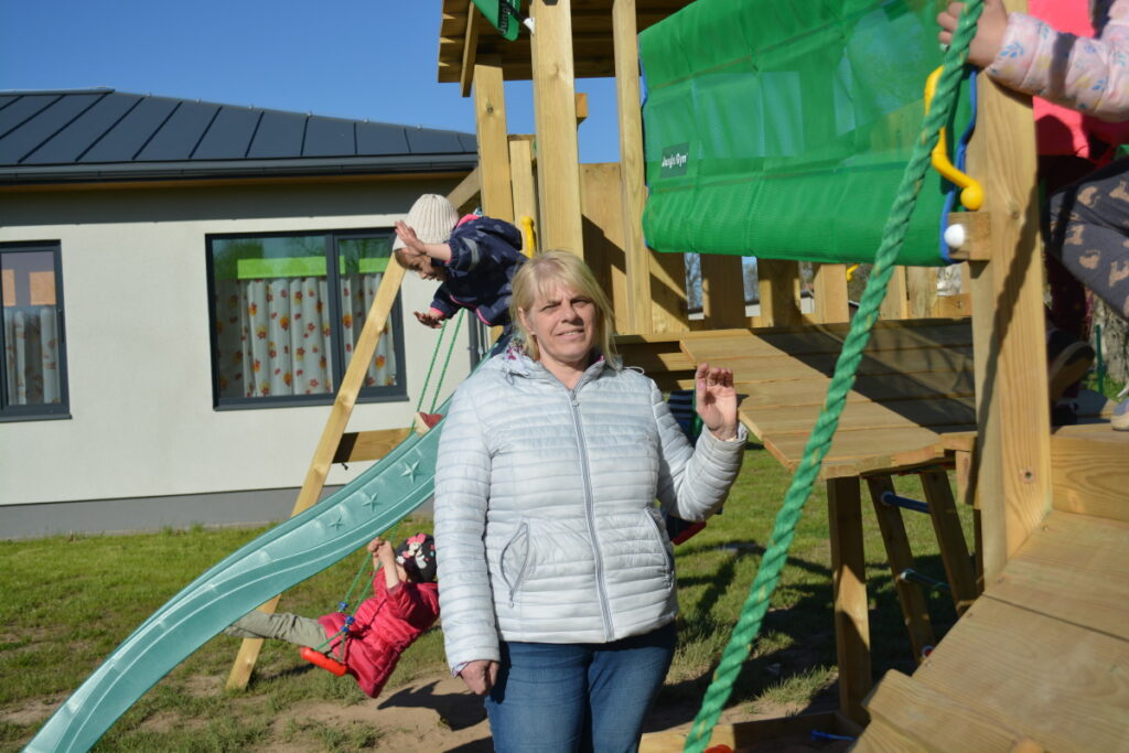 “Ziemeļlatvija” SOS bērnu ciemata mājās Valkā viesojās trešdienas pēcpusdienā, kad no bērnudārza un skolas atgiezušies visi bērni. Arī dienas otrajā pusē viņiem netrūkst enerģijas un spēka – bērni lēkā uz batuta, laižas lejā no slidkalniņa un šūpojas. “Enerģijas viņiem pietiek. Visu laiku jābūt klāt. Uz batuta arī visi reizē netiek – vai nu vispirms tie ir mazākie bērni un lielākie pēc tam, vai otrādi,” pauž SOS mamma Sanita Grīnberga un uzsver, ka ģimene jaunajā mājvietā jau ir iedzīvojusies un ar visu jau apradusi. “Lai gan Valkas mājas oficiālā atklāšana notika pirms divām nedēļām, mēs šeit jau dzīvojam no februāra vidus. Mums bija laiks iedzīvoties, tāpēc dienā, kad pie mums ieradās ciemiņi oficiālā vizītē, uzņēmām viņus ar lielu prieku, iepazīstinājām ar māju un apkārtni,” papildina Sanita un arī laikrakstam izrāda ciemiņu sadāvinātos kociņus, kas iestādīti mājas pagalmā, tur tagad aug ābelītes un ķirši, kas priecēs ģimeni gan ziedu laikā, gan ievācot ražu. Un darba pagalmā netrūkst – tur ir plašs mauriņš, uzraktas vairākas dobes un uzcelta siltumnīca, kurā jau var manīt brašus tomātu stādus. “Bērniem šeit patiešām viss ir, sākot no rotaļu laukuma līdz zaļajai zonai. Dārzs un siltumnīca ir arī tādēļ, lai bērni augot redz, ka, lai izaugtu tas pats tomāts, par stādu ir regulāri jārūpējas, tam jāvelta laiks un uzmanība, tikai tad būs rezultāts. Tāpat ir arī dzīvē attiecībā uz citām lietām, – lai veidotos labas attiecības ar ģimeni un līdzcilvēkiem, ir jāiegulda arī savs devums,” pārliecināta Sanita, kura pati ir no Smiltenes puses.