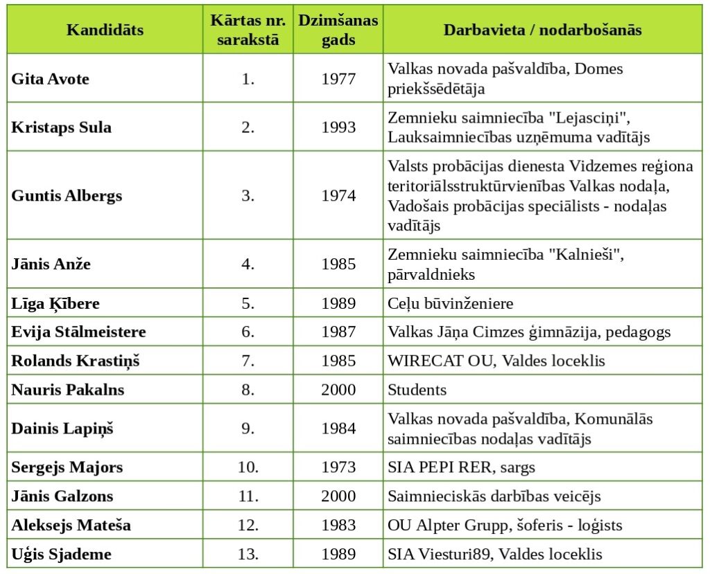 Piektdien Centrālās vēlēšanu komisijas mājaslapā publiski pieejamā informācija liecina, ka Valkas novadā ir iesniegti vēl divi deputātu kandidātu saraksti – “Suverēnā vara”, “Apvienība Jaunlatvieši” un “Latvijas attīstībai”, “Latvijas Zemnieku savienība”.