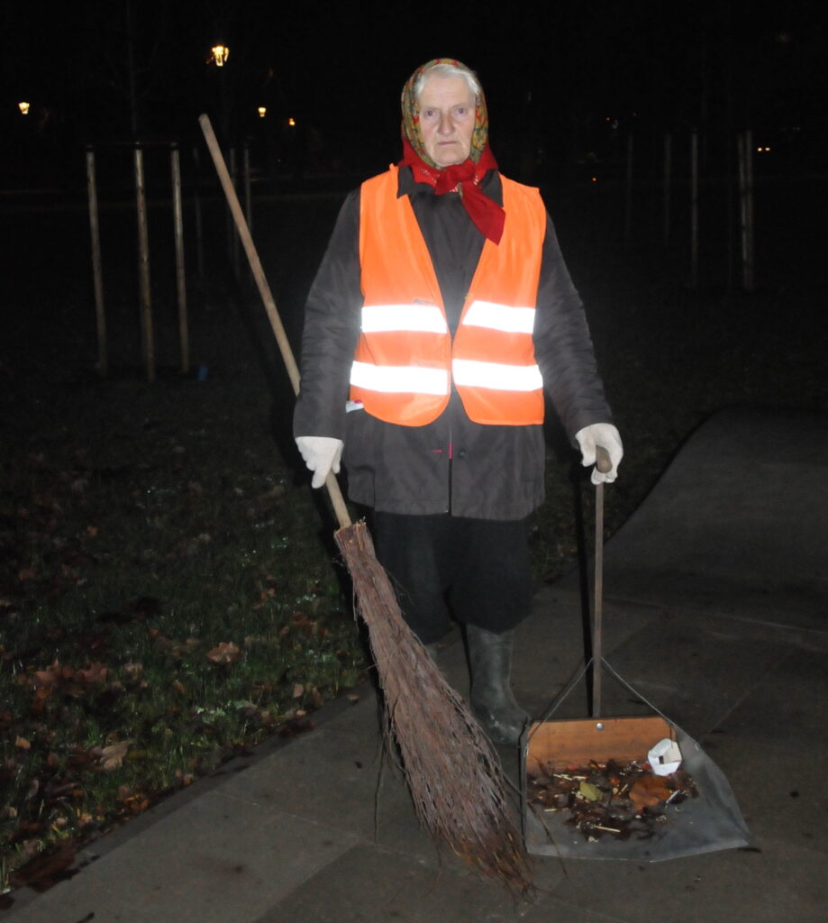 Jāatzīst, mūsdienās nav daudz cilvēku, kuri, esot pensijā, strādā tik smagu fizisku darbu, kāds tas ir sētniekiem. Jautājot, kāpēc Rūtas tante joprojām strādā, viņa atbild: “Man patīk. Ir jākustas. Pašreiz vēl nevaru pateikt, cik ilgi strādāšu, bet, kamēr veselība ļaus, tikmēr strādāšu. Es neslimoju. Pirms diviem gadiem gan jutu tādu kā nespēku, sešas dienas nogulēju slimnīcā, bet tagad viss ir labi. Esmu moža un jūtos labi. Es nesūdzos, ka darbs ir fiziski smags. Pašam jāskatās, kā strādāt. Lielos, baltos maisus cenšos ar lapām nepiebāzt pilnus, jo tad pašai ir smagāk. Mums jau palīdz arī tehnika un darbabiedri. Viņi man ir labi, arī priekšnieki ir cilvēcīgi un atsaucīgi. Satiekam. Mums darbam iedot gan cimdus, gan slotas, arī vestes. Viss mums ir, nav par ko čīkstēt.”