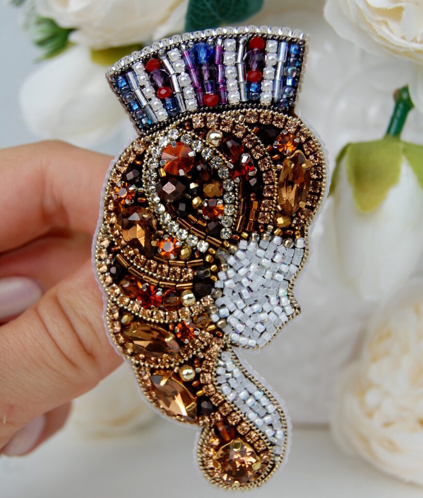 Šobrīd dizaina darbnīcā uz vietas ir apskatāmas visas gatavās rotas, ziepes, sveces un tā tālāk. “Pārsvarā sanāk rotas šūt pēc individuāliem pasūtījumiem, un mani klienti zina, ka rotas ir jāpasūta laicīgi. Bet ļoti bieži gadās, ka kaut kas skaists ir nepieciešams tūlīt. Tad ar prieku piedāvāju jau gatavās rotas, kuras esmu izgatavojusi kādā brīvā brīdī. Komplektējam arī dāvanu komplektus, iepakojam gatavu pasniegšanai,” stāsta Ketija, kuras piedāvājumu papildinājusi piespraude ar stilizētu tautu meitas motīvu par godu dziesmu un deju svētkiem. Tāda piespraude tapusi mirkļa iespaidā un ieguvusi necerēti lielu popularitāti. “Klientu pasūtījumu realizācijas laikā tapa vairākas variācijas par šo piespraudi, spēlējoties ar matu toņiem, krāsu akcentiem un kroņu variācijām. Šīs piespraudes vēl joprojām piepilda manu pasūtījumu sarakstu, lai gan dziesmu svētki jau ir aizvadīti,” neslēpj rotu meistare, kura uzskata, ka darbā ar klientiem cenšas atrast īpašu pieeju katrai dāmai un izveidot tādu rotu, kādu pasūtītāja ir iecerējusi. Svarīga ir katra nianse. Piemēram, viņai ļoti labi padodas izšūt arī mājdzīvnieku portretus. Viņas vislielākā iedvesma ir daba. “Dabiskie akmeņi ir mana vājība, tos ielieku gandrīz visās rotās. Mani ļoti uzrunā akmens čipsi un to tekstūra. Tāpēc arī ir “Rotu dārzs”, dārzs, kur dzīvo putni, ziedi, tauriņi, bitītes, ķirzaciņas un tā tālāk. Dārza tēma ir ļoti plaša, atkarībā no sezonas un garastāvokļa to nemitīgi apspēlēju. Darbojoties esmu sapratusi, ka “pastāvēs, kas pārvērtīsies”. Ir jābūt mūžīgai izaugsmei un lielām ambīcijām, jāspēj nemitīgi piedāvāt jaunas lietas, neaizmirstot par kvalitāti. Jauni dizaini, kvalitatīvi materiāli, sezonāli krāsu salikumi un pozitīvisms ir neatņemama manas ikdienas sastāvdaļa. Noteikti nedrīkst baidīties eksperimentēt,” ir pārliecināta Ketija.