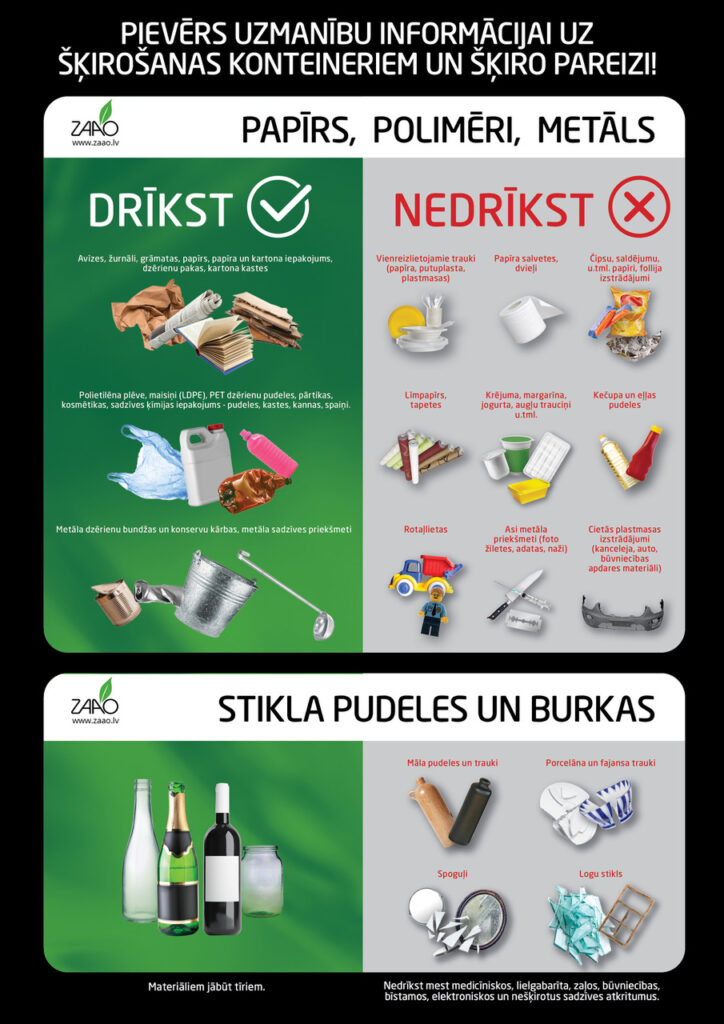 SIA “ZAAO” (ZAAO) atgādina, ka Valkas novadā nodrošina atkritumu šķirošanas pakalpojumu pieejamību gan privātmāju iedzīvotājiem, gan daudzdzīvokļu māju iedzīvotājiem, gan juridiskām personām.