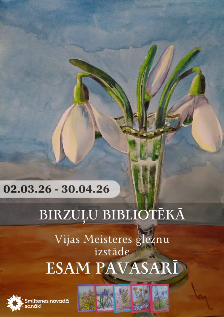 No 2. marta līdz 30. aprīlim Birzuļu bibliotēka saviem apmeklētājiem piedāvā vietējās mākslinieces, bijušās ilggadīgās bibliotēkas vadītājas Vijas Meisteres gleznu izstādi “Esam pavasarī”.