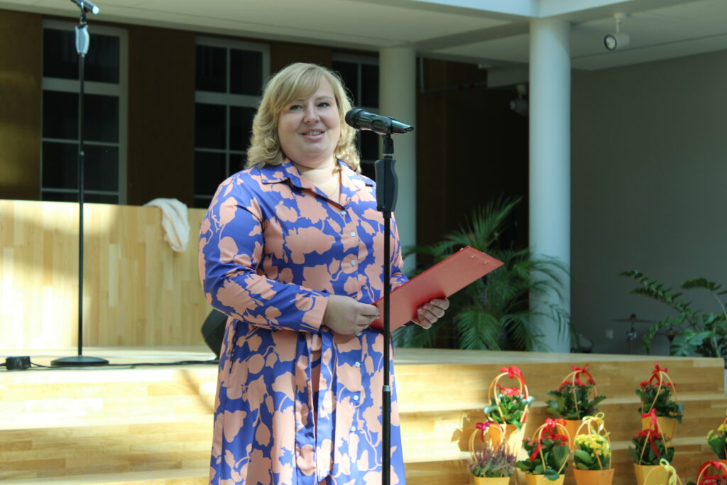“Skolotāji! Jūs esat tie, kuri palīdz bērniem atklāt viņu potenciālu, stiprina ticību sev un iedrošina tiekties uz mērķi. Katrs jūsu teiktais vārds, katra saruna un katrs padoms var kļūt par pagrieziena punktu viņu dzīvē. Šī konference ir svētku brīdis, kad visi kopā tiekamies, lai svinētu jaunā mācību gada sākumu, iegūtu pozitīvas emocijas un iedvesmu, kas mūs ceļ augšup un kļūst par kāpnēm jauniem sasniegumiem,” skolotājus uzrunāja Evija Kindzule.
