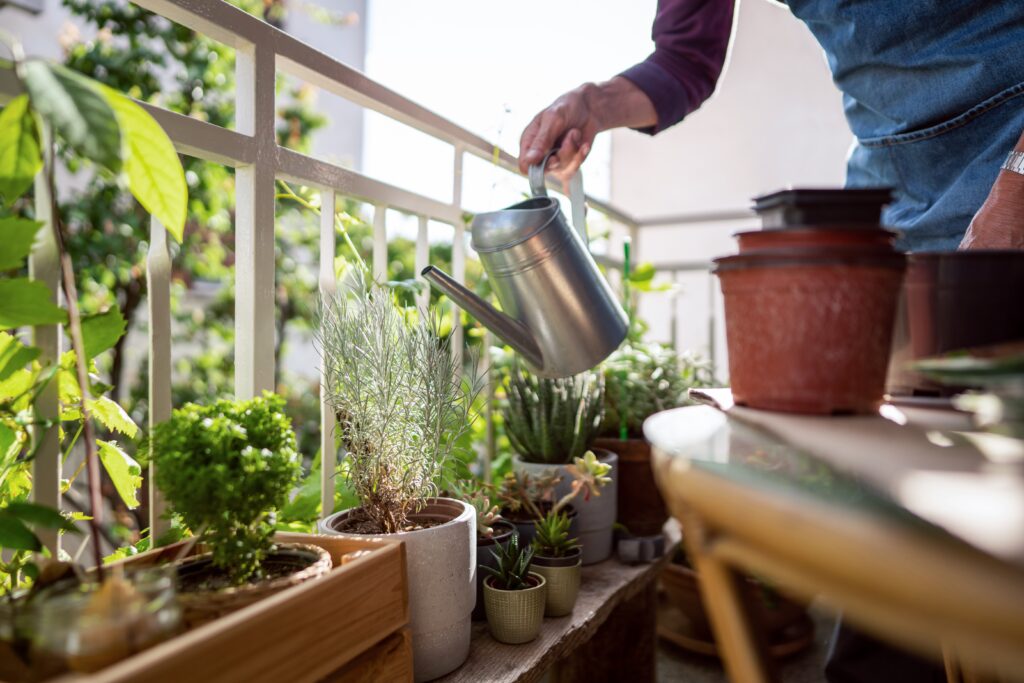 Kā piemēru ainavu arhitekte Alise Damberga min lietus ūdens uzkrāšanas sistēmas: “Ja to ļauj balkona vai terases konstrukcija, iespējams integrēt ūdens uzglabāšanas risinājumus – speciālus konteinerus, kas nodrošina augus ar mitrumu arī sausuma periodos.”