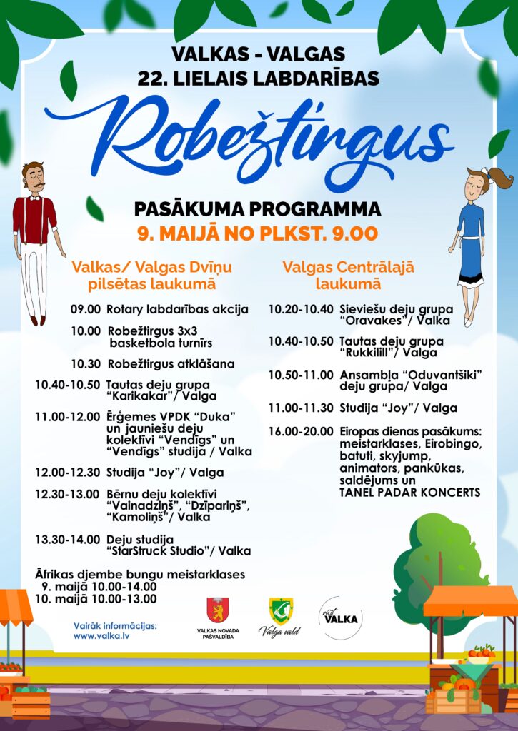 Šī gada 9. un 10. maijā no plkst. 9.00 Valkas un Valgas dvīņu pilsētu laukumos norisināsies jau 22. Lielais labdarības Robežtirgus!  Pulcējot apmeklētājus no abām valstīm un piedāvājot daudzveidīgu kultūras, sporta un izklaides programmu visai ģimenei.