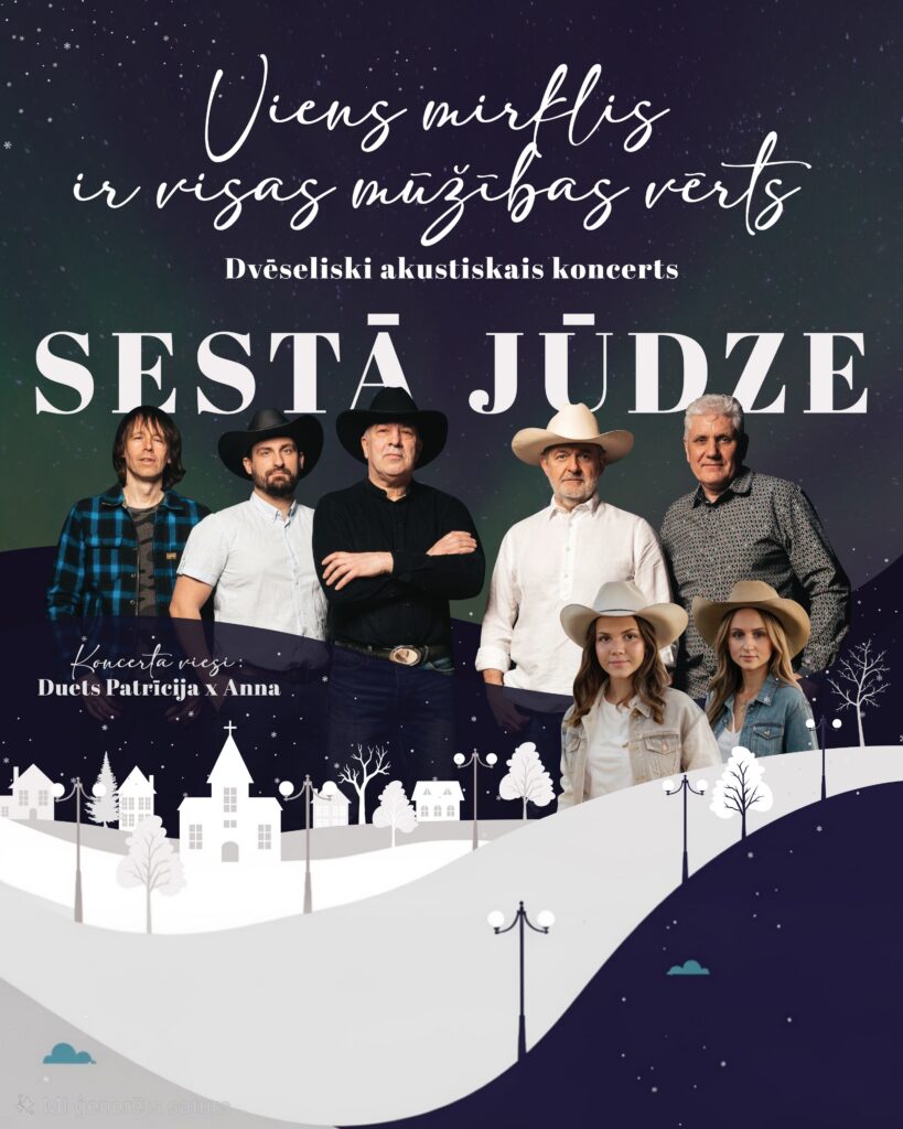 Īsi pirms gadumijas, kad gaisā virmos piparkūku un mandarīnu smarža, bet daudziem no mums prātus aizvien neatvairāmāk pārņems cerība un ticība gaišākai rītdienai, Latvijas titulētākā kantrimūzikas grupa “Sestā Jūdze” savus klausītājus aicinās noklausīties sirsnīgu Ziemassvētku dziesmu programmu dvēseliski akustiskajā Ziemassvētku koncertā “Viens mirklis ir visas mūžības vērts”.