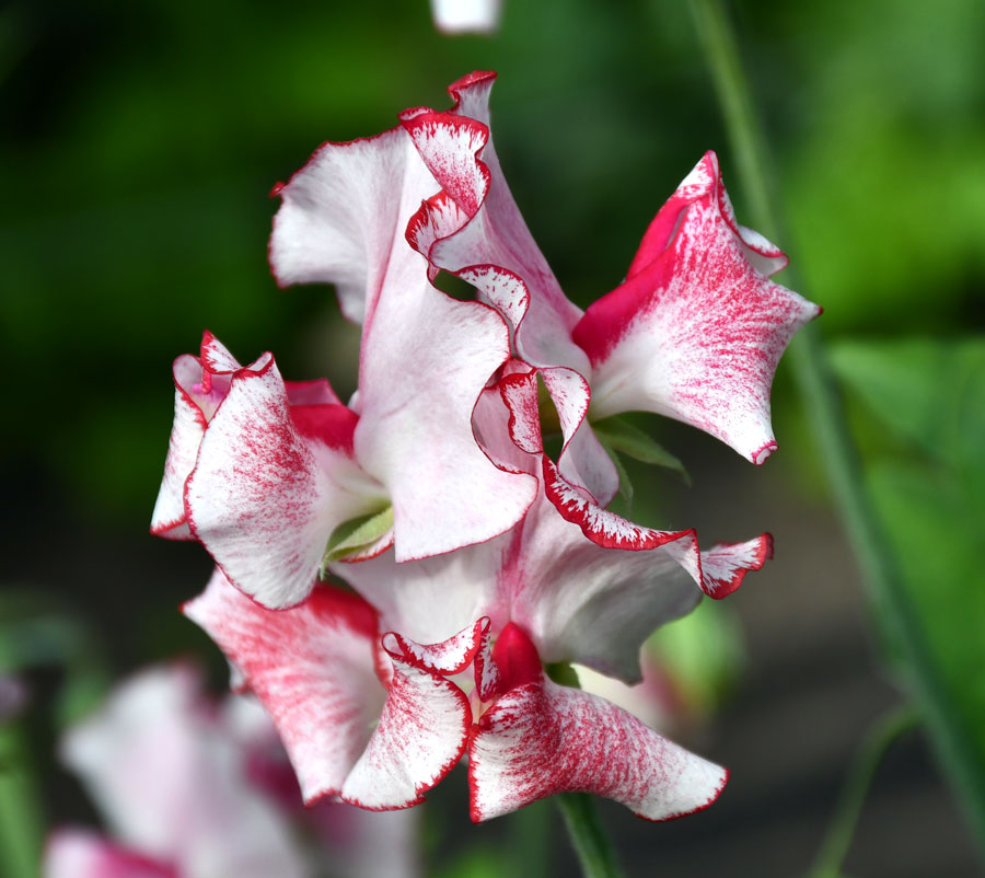 Kristīne audzē tikai lielziedu puķuzirņus, kas speciāli paredzēti grieztajiem ziediem. Tie, ar kuriem labprāt priecējam acis piemājas puķudobēs, ir smaržīgie ar mazākiem, toties salīdzinoši aromātiskākiem ziediem. Jāteic gan, ka arī lielziedu puķuzirņu siltumnīcā reibināja neuzbāzīgs, teju ēterisks parfīms. Vissmaržīgākie esot balto un citu gaišo krāsu šķirņu puķuzirņi. Tumšajiem smaržu kompozīcija nemanāmāka.