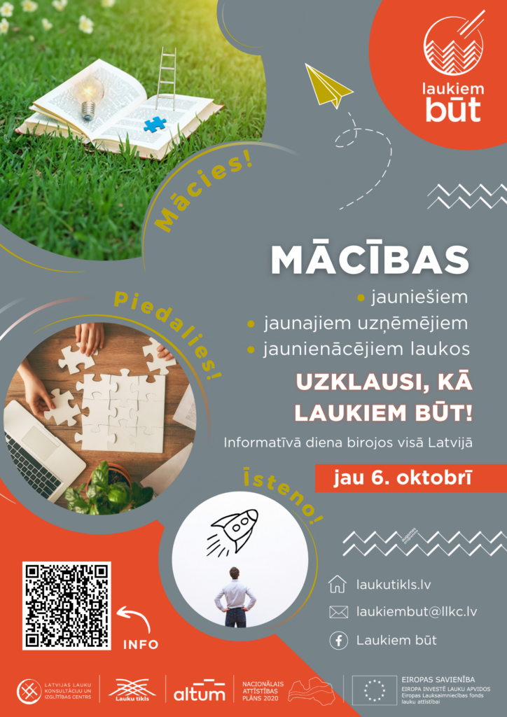 Pēc mēneša – 6. oktobrī – ar informatīvo dienu visos Latvijas reģionos sāksies jau 12. “Laukiem būt!” sezona, ko Latvijas Lauku konsultāciju un izglītības centrs (LLKC) īsteno aktivitātes “Atbalsts uzņēmējdarbības veicināšanai lauku teritorijās” ietvaros.