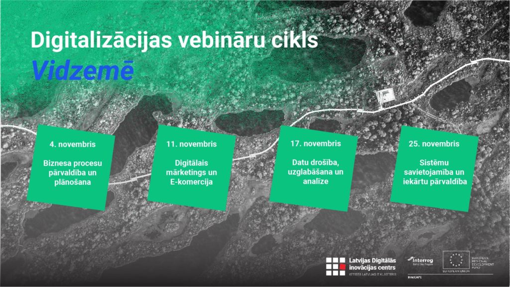 Vidzemes uzņēmumi un pašvaldības tiek aicināti pieteikties vebināru ciklam par digitalizācijas iespējām, kas norisināsies četrās novembra ceturtdienās no plkst. 10.00 līdz 12.00.