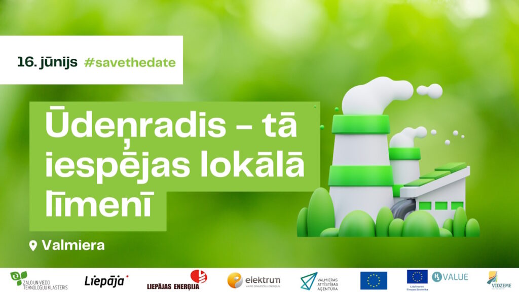 Energoefektivitātes nedēļas ietvaros, biedrība “Zaļo un Viedo Tehnoloģiju Klasteris” aicina piedalīties pasākumā “Ūdeņradis – tā iespējas lokālā līmenī”, kas norisināsies 16. jūnijā no plkst. 14.00 līdz 17.00 viesnīcā “Wolmar”, Tērbatas ielā 16A, Valmierā.