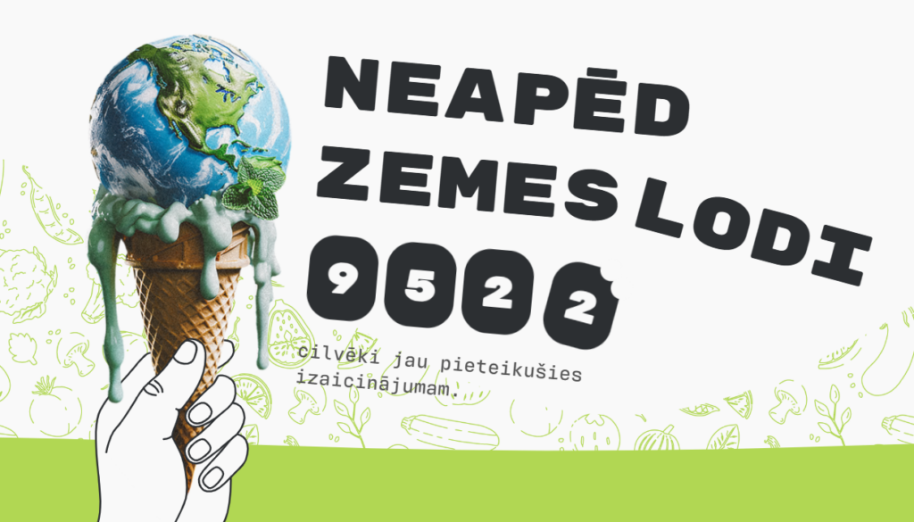 Apvienoto Nāciju Organizācija (ANO) iesaka augu valsts uzturu kā ietekmīgu risinājumu klimata krīzei. Augu valsts uzturs ļauj par 75% samazināt zemes platību patēriņu, ūdens piesārņojumu un siltumnīcefekta gāzu emisijas, 2023. gada pētījumā atklāja Oksfordas Universitātes uztura zinātnieki. Tikmēr Latvijā vidējais gaļas patēriņš uz cilvēku vismaz divreiz pārsniedz uztura zinātnieku rekomendācijas.