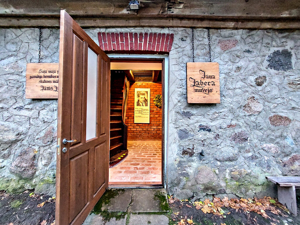 “Šinī mājā 1935. gada 11. augustā dzimis Jānis Zābers,” stāstu sāk G.Brieze, fonā skanot Jāņa Zābera balss skaņu ierakstam. “Sešdesmitajos gados viņš bija slavens mākslinieks šeit, Latvijā, un viņš kļuva slavens arī pasaulē, kaut gan viņa mūžs bija īss – tikai pilni 37 gadi. Un arī skatuves darbības laiks bija īss – tikai 10 gadi. Viņš kļuva slavens arī latviešu tautā. Pusi savas dzīves viņš ir pavadījis šeit. Šī ir otrā ekspozīcija kopš muzeja pirmsākumiem. Vislielākā izmaiņa otrajā ekspozīcijā ir improvizētā skatuvīte, uz kuras atrodas viņa tērpi no piecām operu izrādēm, kaut gan viņam ir bijušas pavisam 24 operu lomas. Antiņa tērps ir no operas “Zelta zirgs”. Ar šo tērpu viņš nodziedāja Antiņa lomu 53 reizes. Tas ir diezgan daudz. Šinī telpā mums vēl ir grāmatas. Piemēram, Gunta Eniņa grāmata “Koki mājas nepamet”, kurā aprakstīts Zābera ozols, kas atrodas netālu pļaviņā, kad iet uz upi. Pie šī ozola notiek koncerti, ir atjaunojusies koncertu tradīcija augustā, kad Zāberam ir dzimšanas diena.”