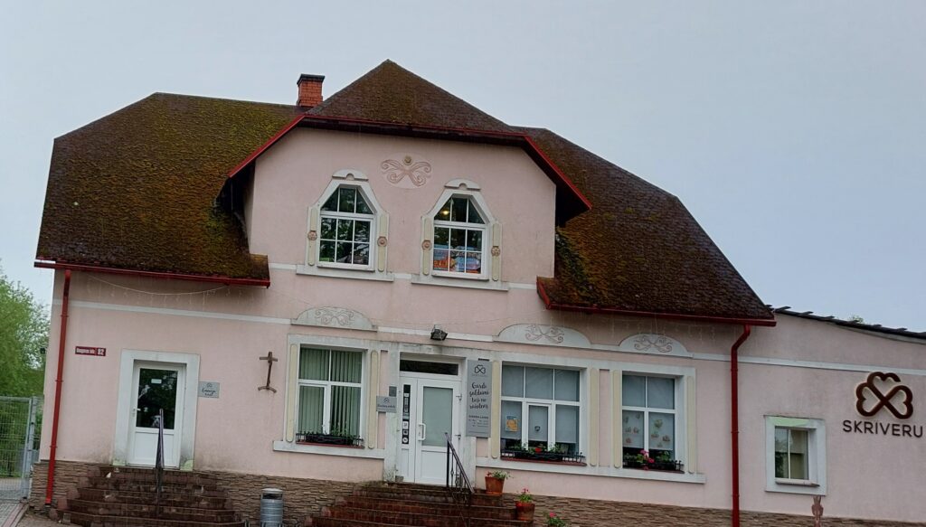 “Šī ir pati senākā ēka Skrīveros. Skrīveros kādreiz dzīvoja rakstnieks Andrejs Upīts. Viņš ir sarakstījis daudz grāmatu, tajā skaitā “Zaļo zemi”. Tajā viņš bija aprakstījis arī šo ēku. Tajos laikos tas bija Raudas krogs. Tad pēc tam šī ēka bija dzīvojamā ēka, augšā bija trīs mazi dzīvoklīši, lejā arī bija trīs dzīvoklīši. Pēc tam šo ēku iegādājās uzņēmējs no Zviedrijas un izveidoja pienotavu. Tādu to iegādājās Normunds un Iveta, atjaunoja un pielāgoja saldumu ražošanai. Nu un tā mēs šeit ražojam saldumus līdz šodienai un, cerams, vēl ilgi ražosim saldumus, vēl paplašināmies, jo pieprasījums ir ļoti liels. Tagad visu jau pārvalda viņu bērni. Mūsu produkcija tiek sūtīta uz ārzemēm. Un pirmais, ko viņi izdarīja, – logo noņēma vārdu “saldumi”, paturot “Skrīveru”, lai nejauktu galvas ārzemniekiem, ko nozīmē “saldumi”. Jaunais logo ļoti labi saskan ar Skrīveru ģerboni. Logo simbolizē ģimeni, tās trīs paaudzes, bet izskatās arī kā trīslapu āboliņš, kas simbolizē dabīgumu, sirsnību, mīlestību, tas ir, kā mēs strādājam, no kā mēs ražojam, kādas izejvielas izmantojam. Ja pieliek klāt mīlestību, tad viss sanāk daudz gardāk. Mūsu uzņēmums nemaz tik liels nav. Kopumā esam apmēram 90 cilvēki, apmēram, jo uz Ziemassvētku laiku tiek pieņemti vēl desmit “rūķi”. Ražotnē strādā 35-38 cilvēki. Bet saldumu mēs saražojam ļoti daudz! Pagājušajā gadā mēs saražojām 840 tonnas saldumu, no kurām 420 tonnas tikai “Gotiņu” konfektes, kas ir populārākais saldums, ko izvēlas klienti,” stāsta uzņēmuma pārstāve.