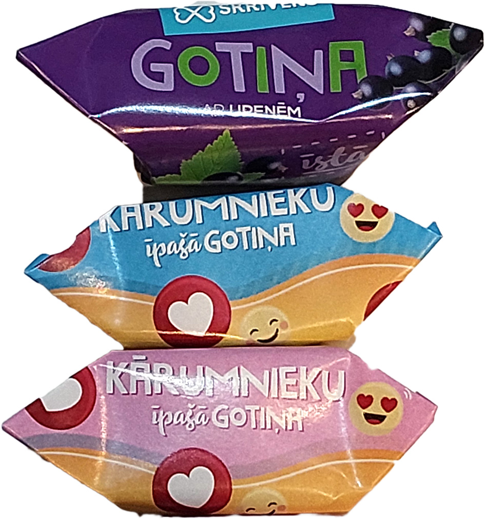 “Gotiņu” receptē ir sešas sastāvdaļas: piens, glikozes sīrups (tāpēc tās ir staipīgas un vijīgas vismaz trīs nedēļas), cukurs, vaniļa, sviests un – mīlestība. Lizumā konfektes vairs neražo, jo nebija vairs tinēju. “Mēs saprotam, ka tas pats notiks šeit. Kad es atnācu pirms astoņiem gadiem, bija 24 konfekšu tinējas. Tagad ir palikušas 13. Divas labākās tinējas jau atrodas pensijā, bet turpina joprojām strādāt. Un šis ir 56. gads, kopš viņas tin “Gotiņu” konfektes! Tagad gan tinam konfektes arī ar iekārtu, jo pasūtījums ir tik liels, ka tinējas vairs nespēj satīt ar rokām. Pieprasījums viņām primāri ir uz personalizētajām konfektēm: dzimšanas dienām, kāzām, ielūgumiem, firmām – izpildām jebkuras klientu vēlmes. Tinējai 3-4 sekundēs jāietin viena konfekte, jābūt spiciem stūrīšiem, nedrīkst būt izcilnīši. Priekš iekārtas masu vāra par 7 minūtēm ilgāk, lai robots spētu ietīt. Robota tītās konfektes atšķiras,” stāsta uzņēmuma pārstāve un piebilst, ja vēlas, lai “Gotiņas” ir svaigas un staipīgas, tad tās jāuzglabā ledusskapī vai saldētavā. Viņa iesaka arī pamēģināt “Gotiņu” pielikt kafijai – būs gan cukurs, gan piens.