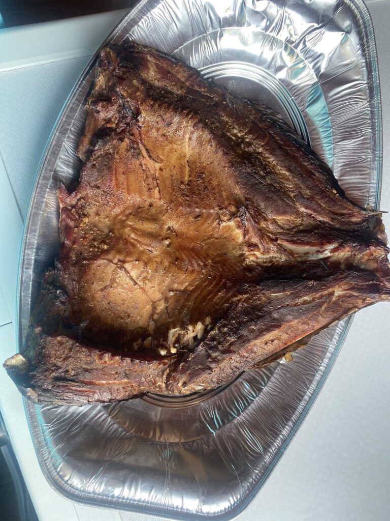 Daiņa un Ligitas Gailītes noķertās karpas tiek kūpinātas pēc Daiņa īpašās receptes. Garšoja lieliski!