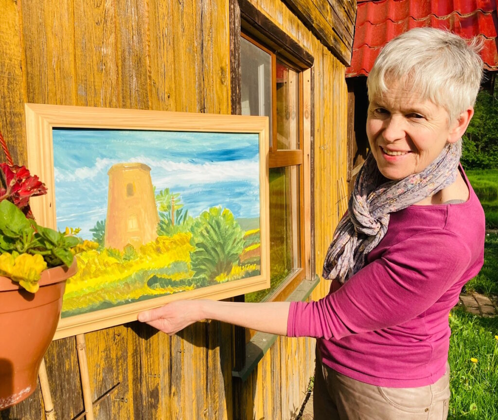 Kristīnes ikdienas darbs saistīts pavisam ar citu nozari, viņa ir farmaceite, kuru ikdienā cilvēki var satikt aptiekās – Palsmanē un Smiltenē. Sieviete savus darbus ir sākusi dāvināt uz svētkiem sev tuviem un mīļiem cilvēkiem. Mājās istabu sienas rotā viņas gleznas. Viņa tās maina attiecīgi garastāvoklim vai gadalaikam aiz loga.