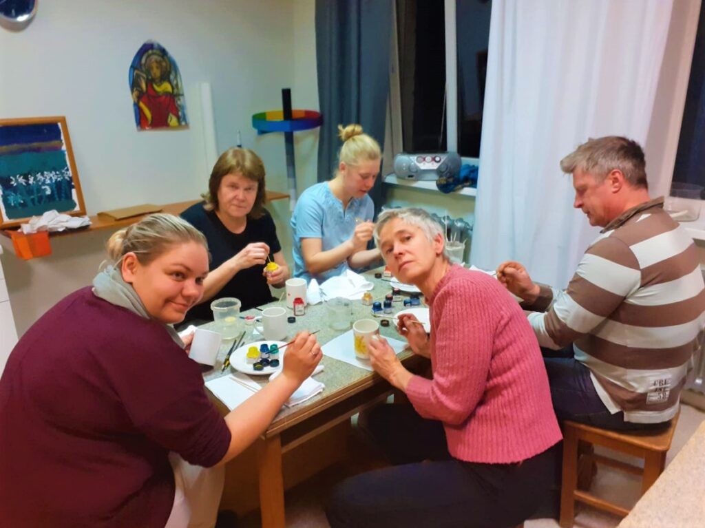 Katrā kopā sanākšanas reizē vizuālās mākslas studijā “Brīvbrīdis” top kaut kas jauns, attēlā – iemēģināta roka porcelāna krūzīšu apgleznošanā.