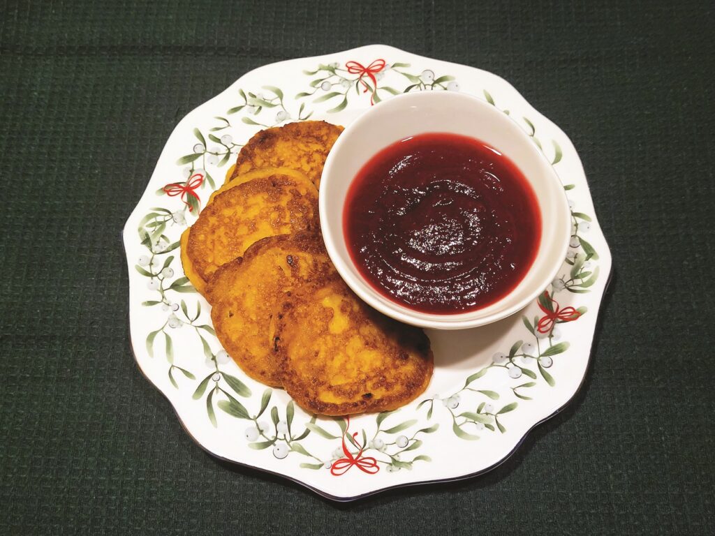 KAD AIZGRIEZTS lielais ķirbis, to papildinot ar āboliem, varam izcept zeltainus un gardus plācenīšus, ko baudīt ar skābo krējumu vai skābenu ievārījumu. Ķirbja gabalu nomizoju, izņēmu sēklas un šķiedras un sagriezu kubiņos. ‘Antonovkas’ ābolus nomizoju un arī sagriezu. Ķirbi un ābolus liku blendera krūzē, pielēju 3 ēdamkarotes kefīra un sablendēju, lai veidojas graudaina masa. Pēc tam tai bļodā piemaisīju atlikušo kefīru un skābo krējumu, piesitu olas, piekaisīju cukuru, sāli, kanēli un labi sakūlu. Lai jau justu Ziemassvētku noskaņu un baudītu asāku garšu, te vēl varam pievienot arī nedaudz piparkūku garšvielu. Tad piekaisīju miltus, cepamo pulveri un vēlreiz visu rūpīgi samaisīju. Atkarībā no ķirbju un ābolu sulīguma varbūt vajadzēs pievienot nedaudz vairāk miltu, nekā receptē norādīts. Pannā ar uzkarsētu augu eļļu liku pa ēdamkarotei mīklas, lai veidojas plācenīši, un cepu no abām pusēm zeltaini brūnus. Labi garšoja gan ar skābo krējumu, gan ar maltām lielogu dzērvenēm, gan arī ar lāceņu ievārījumu.