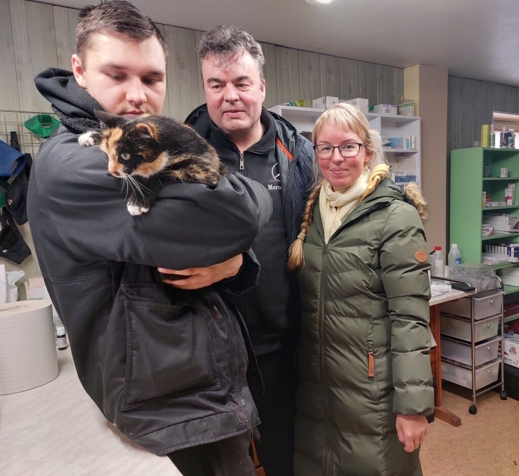 Normundu Gredzenu, kuru satiekam pie I. Vilnes, noteikti var dēvēt par kaķu mīli. Viņš kopā ar ģimeni savās mājās Cēsīs gādā ne tikai par saviem septiņiem kaķiem, bet rūpējas par pieklīdeņiem savas darbavietas teritorijā Valkā. Normunds ne tikai baro kaķus, kuri mistiskā veidā atnāk pie viņiem, bet arī sterilizē, lai tie nevairotos un nerastos nevienam nevajadzīgi kaķi. “Pirms vairākiem gadiem pie mums pieklīda kaķene. Varēja redzēt, ka bija dzīvojusi pie sliktiem saimniekiem – baidījās no noslēgtām telpām. Pagāja kāds gads, līdz kaķis pierada pie cilvēkiem. Bet viņa bija paspējusi palikt grūsna. No trīs kaķēniem vienam atradām citas mājas, bet divi palika pie mums. Protams, kaķeni atvedām uz sterilizāciju. Parasti kaķi vairāk pieklīst uz ziemu. Tie visi principā ir sveši kaķi, kas atnāk un šeit paliek,” stāsta Normunds, kurš arī šoreiz pie veterinārārstes atnācis ar kaķi, kurš mīt viņa darba teritorijā.