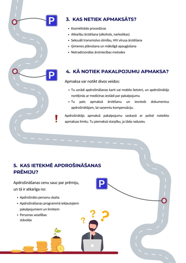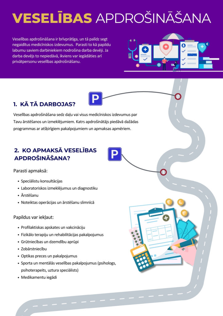 Darba devēji arvien vairāk novērtē veselības apdrošināšanas priekšrocības, un pēc parakstīto prēmiju apjoma šis apdrošināšanas veids 2024. gadā atradies līderpozīcijās, ieņemot 22,6 % no apdrošināšanas tirgus. Lai vecinātu iedzīvotāju izpratni par veselības apdrošināšanu un kam polises segumā jāpievērš uzmanība, Latvijas Apdrošinātāju asociācijas ir sagatavojusi izglītojošu ceļa karti. Šī ir jau trešā ceļa karte kampaņā “Kas Tev jāzina par apdrošināšanu”.