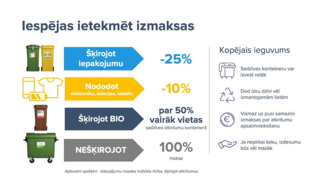 Savukārt līdz ar energoresursu, atalgojumu un citu izdevumu pieaugumu, kas tostarp saistīti ar bioloģisko atkritumu pārstrādes veicināšanu, gaidāms kāpums arī tarifiem par nešķiroto atkritumu noglabāšanu poligonos. To caur rēķiniem par nešķiroto sadzīves atkritumu apsaimniekošanu primāri izjutīs rīdzinieki un Pierīgas iedzīvotāji. Tiem, kuri atkritumus nešķiro, izmaksas būtiski palielināsies. Ieguvēji būs tie, kuri atkritumus šķiros.