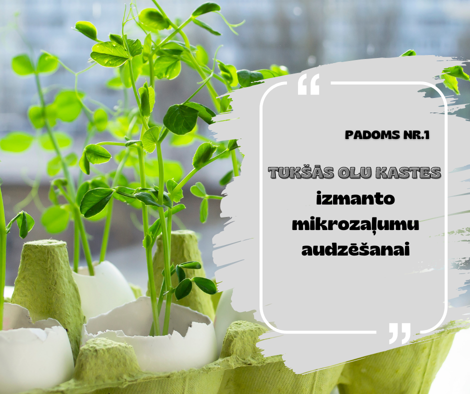 Tukšās kartona olu kastītes var sagriezt vairākās daļās, tajās iebērt zemi un bagātīgi pievienot kressalātu vai citu ātraudzīgu zaļumu sēklas. Mitrinot augsni un turot siltā vietā, šādi var līdz svētkiem paspēt izdiedzēt mikrosalātu pušķīšus, ko dāvināt tuviniekiem Lieldienās vai piegriezt uz sviestmaizēm pašu galdam.