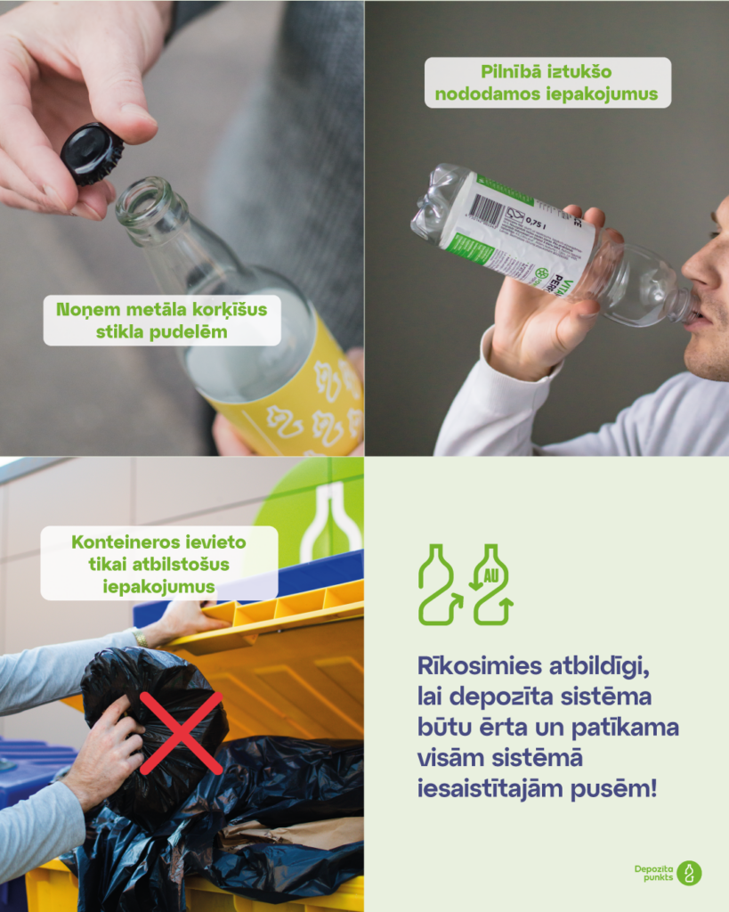 Palielinoties nodoto depozīta iepakojumu īpatsvaram un aktivitātei depozīta punktos, SIA “Depozīta Iepakojuma Operators” aicina iedzīvotājus izmantot depozīta sistēmu atbildīgi, lai tā būtu ērta un patīkama sabiedrībai, un atvieglotu ikdienu arī citām depozīta sistēmā iesaistītajām pusēm, tostarp veikalu darbiniekiem. Lai informētu par labās prakses vadlīnijām depozīta punktos, operators dalās ar padomiem, kurus vērts iegaumēt gan pieredzējušiem sistēmas lietotājiem, gan tiem, kas depozīta iepakojumus nodevuši vien pāris reizes.