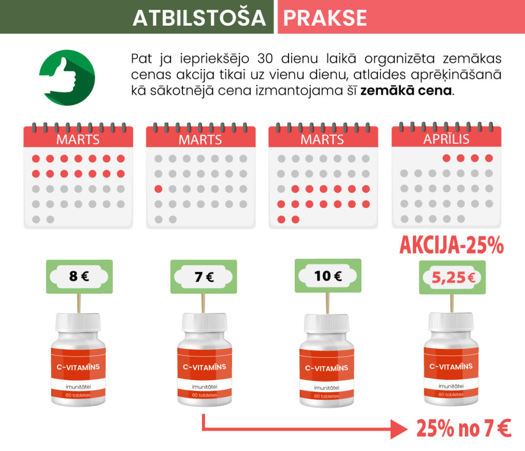 SVARĪGI: atlaide jāpiešķir no cenas, kas bijusi zemākā 30 dienu laikā!