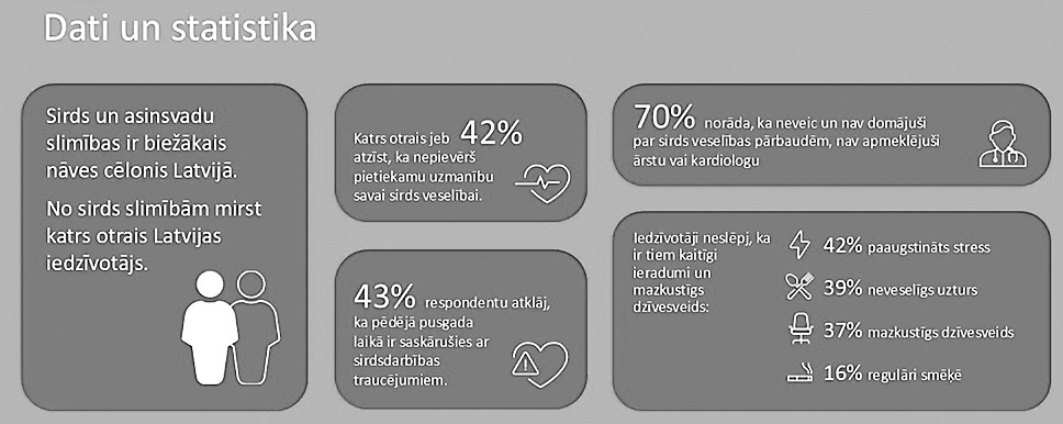 Lai gan informācijas par sirds un asinsvadu veselību netrūkst, statistika nemainās – katrs otrais Latvijas iedzīvotājs mirst no šīm slimībām. Kāpēc mēs joprojām nepievēršam pietiekamu uzmanību savai sirdij? Eksperti uzsver, ka veselīgs dzīvesveids un profilakse var ievērojami mazināt riskus, tomēr daudzi joprojām attopas tikai tad, kad ir jau par vēlu. Sociālā kampaņa “Dzirdi savu sirdi!” aicina sabiedrību aizdomāties par savas sirds veselību un rīkoties laikus.