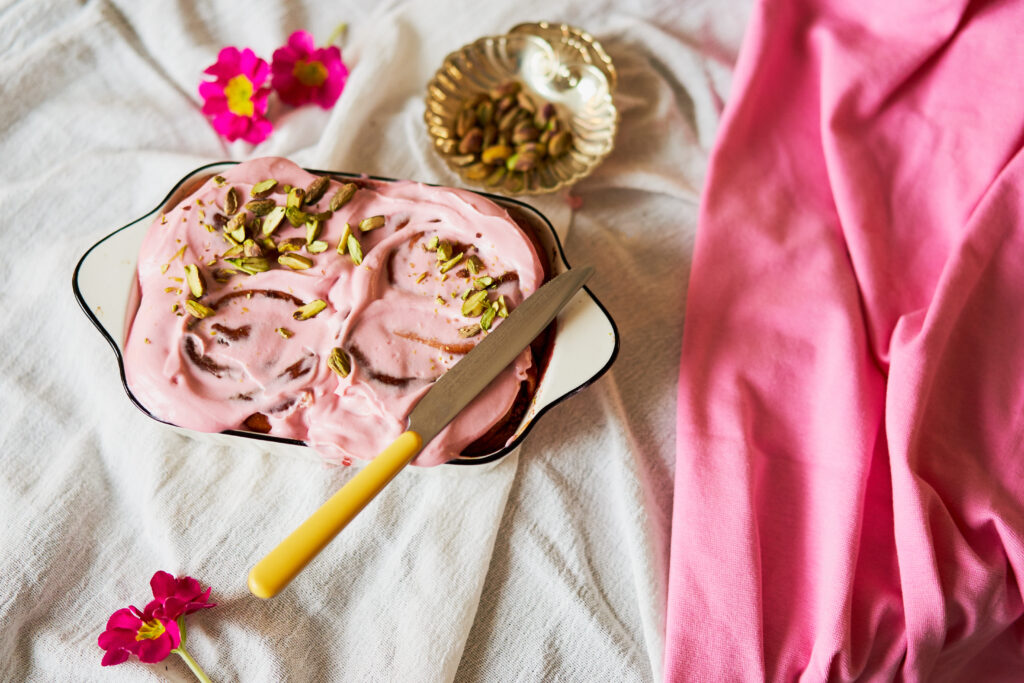 - 3-4 ēdamk. biešu sulas (krāsai)