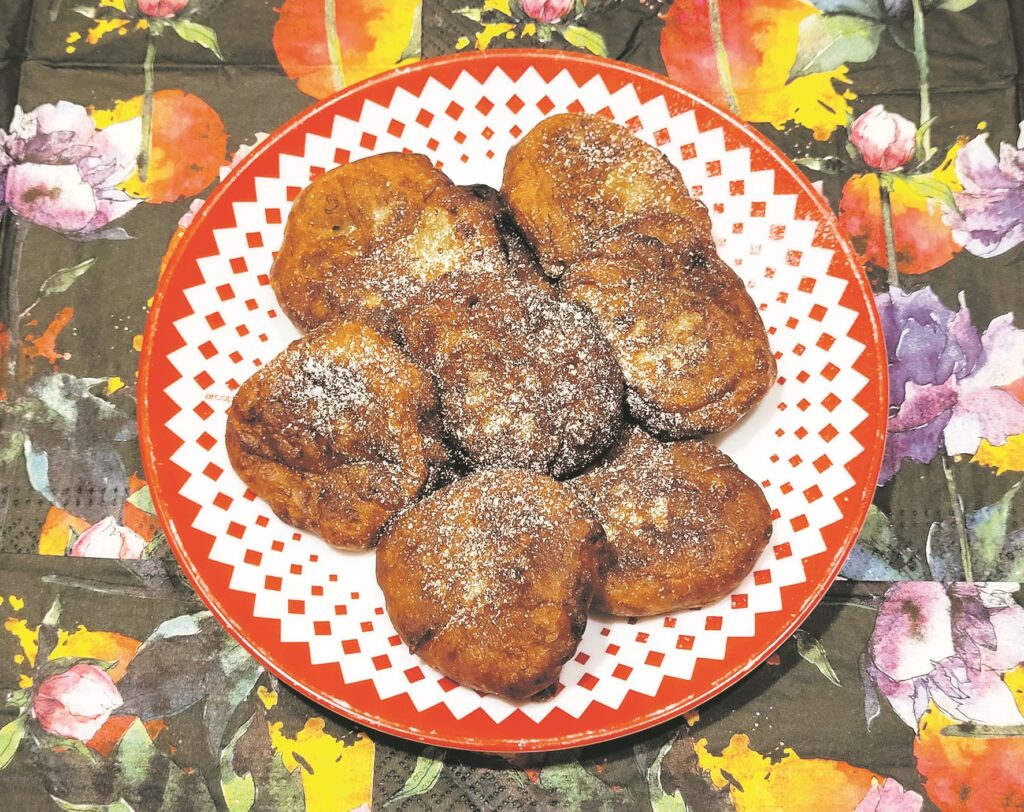 Dziļajā pannā sakarsēju eļļu un uzmanīgi ar tējkaroti laidu tajā mīklas piciņas citu pēc citas. Tās apcepu, līdz veidojās zeltaini brūna garoziņa, un gatavas vēl izliku uz papīra dvieļa, lai uzsūktos liekās taukvielas. Tā kā eļļu pannā nepielēju tik daudz, lai ielaistās mīklas bumbiņas tajā peldētu, banānu kumosiņi izcepās nedaudz saplacināti. Taču “pončiku” un banānu cienītājiem tie noteikti garšos, jo karsti tie ir ar kraukšķīgu garoziņu ārpusē un mīkstu vidiņu. Caur sietiņu tos vēl pārkaisīju ar pūdercukuru.