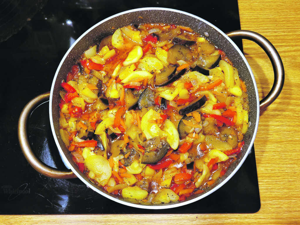 Šāds dažādu dārzeņu salikums garšo gan karsts, gan arī atdzisis. Krāsains un veselīgs. Tie, protams, nav jāsver līdz grama precizitātei, proporcijas varam mainīt pēc savas garšas, dažu ēdāju nīsto papriku vai sīpolus pat nepieliekot. Šoreiz, šo ēdienu gatavojot, pievienoju vēl arī nelielu baklažānu.