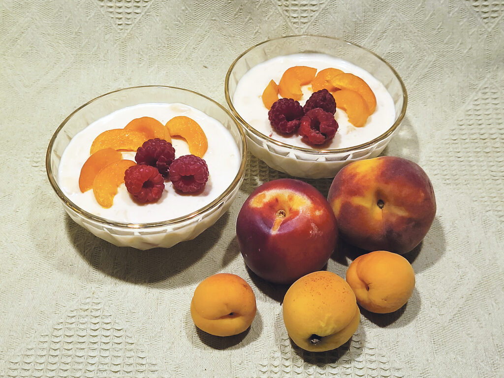 5 aprikozes, 1 – 3 persiki vai nektarīni, 300 gramu skābā krējuma, 100 gramu zefīra, 100 gramu iebiezinātā piena ar cukuru, 100 mililitru piena, 15 gramu želatīna.