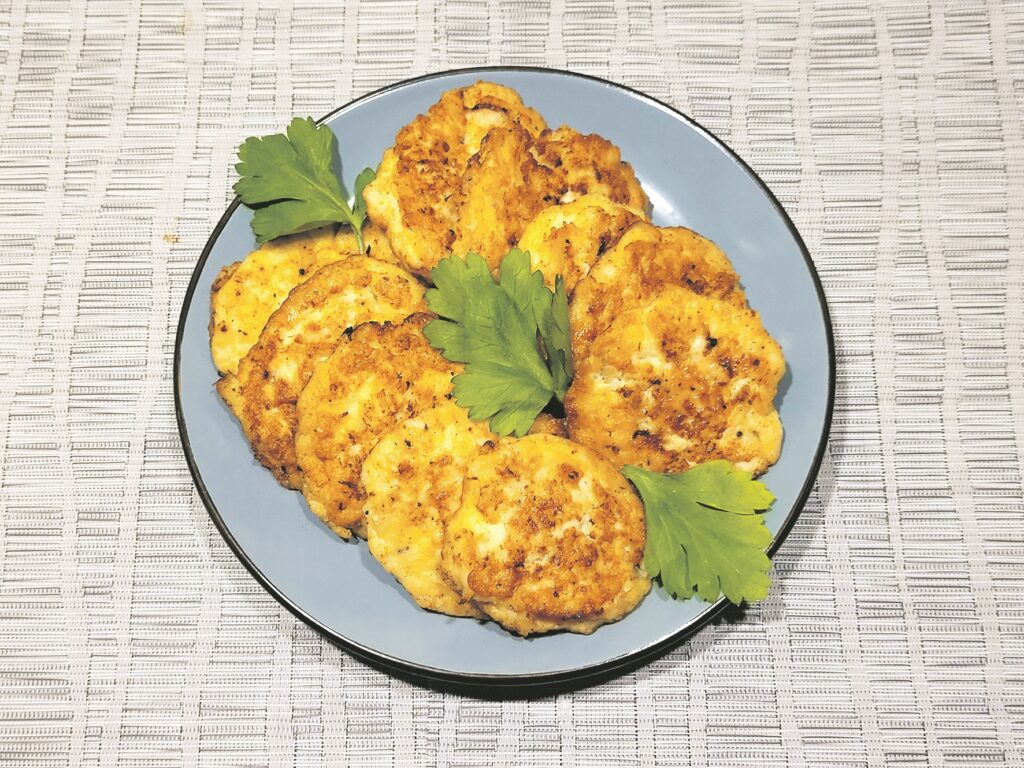 Pannā uz vidējas uguns uzkarsēju augu eļļu un ar karoti liku tajā gaļas masu tā, lai veidojas plācenīši. Tos cepu no abām pusēm zeltaini brūnus.