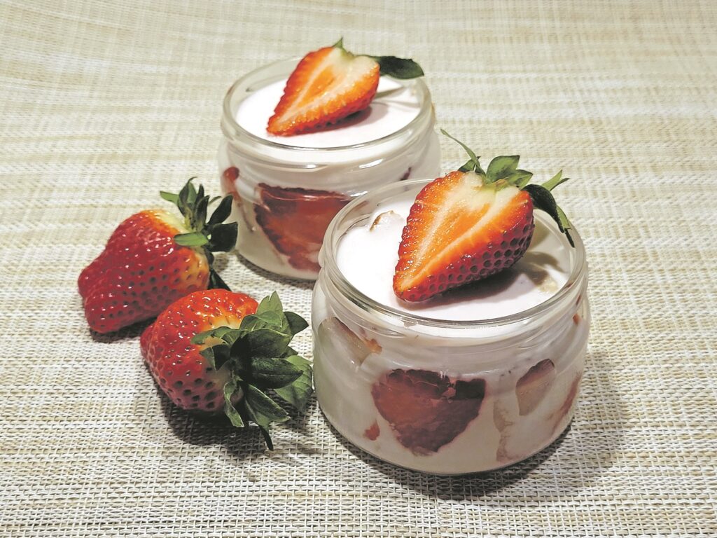 Biezpiena krēma un zemeņu kūka burciņā