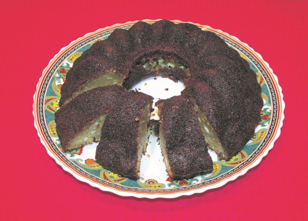 Olas saputoju kopā ar cukuru, piemaisot arī mannu, medu un kartupeļu cieti. Pēc tam piejaucu biezpienu un rīvēto ķirbi. Pielēju augu eļļu, piekaisīju sodu, šķipsniņu sāls un miltus pēc vajadzības – apmēram trīs ēdamkarotes vai mazliet vairāk, to daudzums atkarīgs no ķirbja un biezpiena sulīguma. Mīklai jāsanāk pabiezai, taču joprojām līstošai. To lēju kēksu cepamajā veidnē un ar apļveida kustībām iemaisīju mīklā arī kanēli. Cepu līdz 180 grādiem uzkarsētā cepeškrāsnī līdz gatavībai un atdzesēju veidnē.