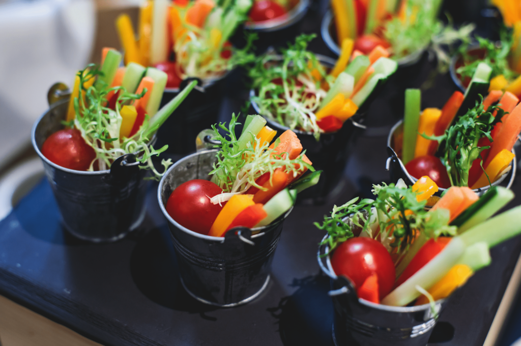 Jārūpējas, lai uz galda vienmēr ir dārzeņi – ķirštomāti, sagriezti burkāni, paprikas strēmeles, puķkāpostu gabaliņi, selerijas stienīši un citi. Dārzeņus var pasniegt ar jogurta mērci vai humosu.